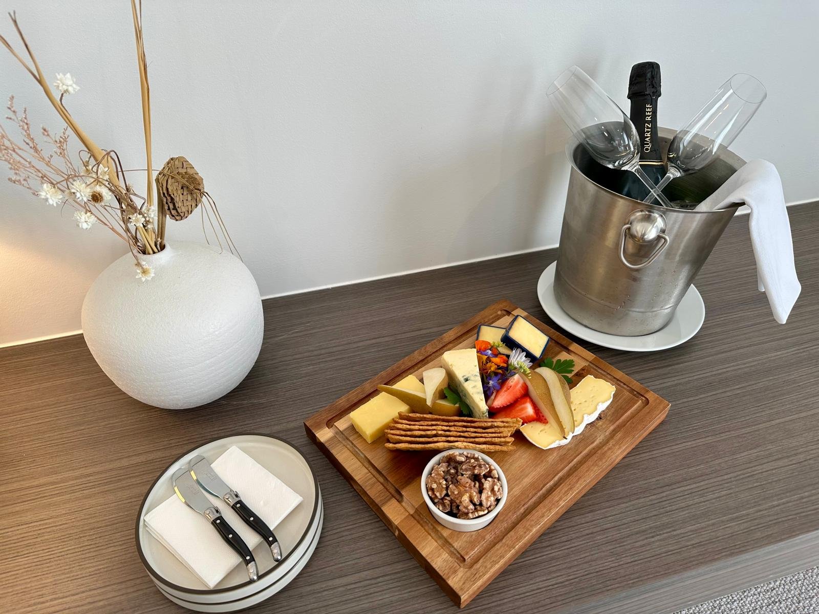 Don’t forget to book a cheese broad and welcoming bubbles!